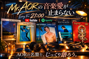 この度、YouTubeとSpotifyの番組【Mr.AORの音楽愛が止まらない】の配信日時を